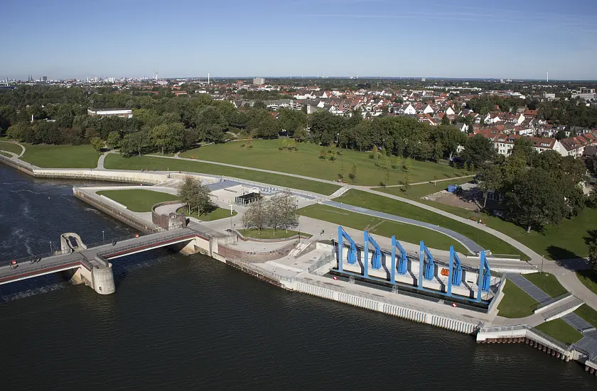 Bereits von 1911 bis 1987 versorgte ein Wasserkraftwerk an dieser Stelle Bremen mit Strom. Nach dem Rückbau der alten Anlage wurde viele Jahre für ein neues Kraftwerk gekämpft – mit Erfolg: Seit April 2012 läuft der Regelbetrieb. Die Weser liefert seither genug Strom, um rund 15.600 Bremer Haushalte jährlich zu versorgen.