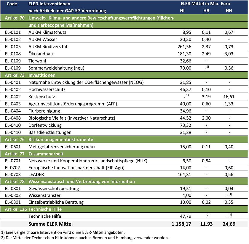 Den Bereich der sogenannten 2. Säule, der ELER-Förderung zur Entwicklung des ländlichen Raums, haben die Länder ausgestaltet. Niedersachsen, die Freie Hansestadt Bremen und die Freie und Hansestadt Hamburg haben hierzu eine gemeinsame Förderregion gebildet und mit KLARA (Klima, Landwirtschaft, Artenvielfalt, Regionale Akteur:innen) ein neues Förderkonzept entwickelt. Dabei haben alle drei Länder mit unterschiedlichen Schwerpunktsetzungen ihre länderspezifischen Bedarfe adressiert. Nach der Genehmigung des GAP-Strategieplans durch die EU-Kommission beginnt die Förderung zum 01.01.2023. Detaillierte Informationen zu KLARA.